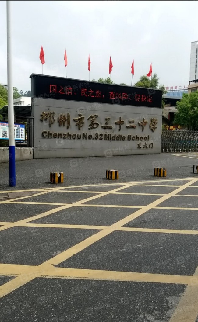 郴州市第三十二中学是在原郴州市四完小的基础上新设立的九年制义务教育学校,2019年秋季开学。学校位于苏仙区曹家坪45号,前临郴江河,背倚东塔岭,占地104亩,建筑面积37182平方米。现有小学55个班,初中6个班,学生3000多人,教师181人。其中拥有市级骨干教师3人,区级骨干教师13名、学科带头人8名,高级教师15名,研究生3名(含海归1名),党员65名。学校联考成绩(尤其是初中部)多次名列市区前茅